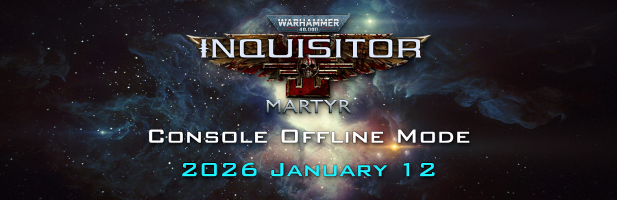 We are happy to announce that the "Offline Mode" update for Warhammer 40,000: Inquisitor - Martyr is coming to consoles next Monday, on January 12, 2026, and maintenance will start at 13:00 CET. Take a break then, and once it's over, restart and update the game.